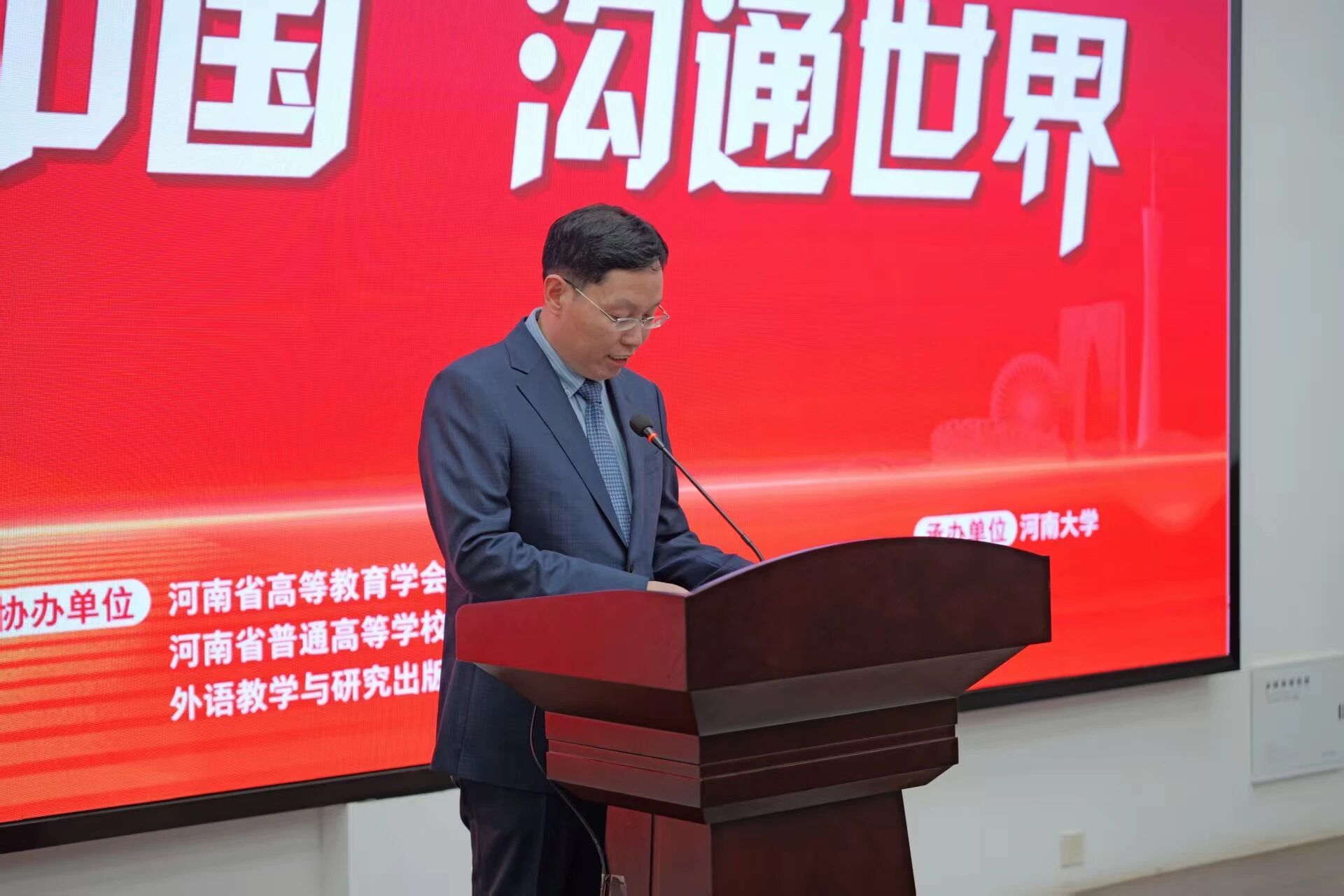 (河南省普通高等学校外国语言文学类专业教学指导委员会主任委员、郑州大学教务部部长钱建成致辞)