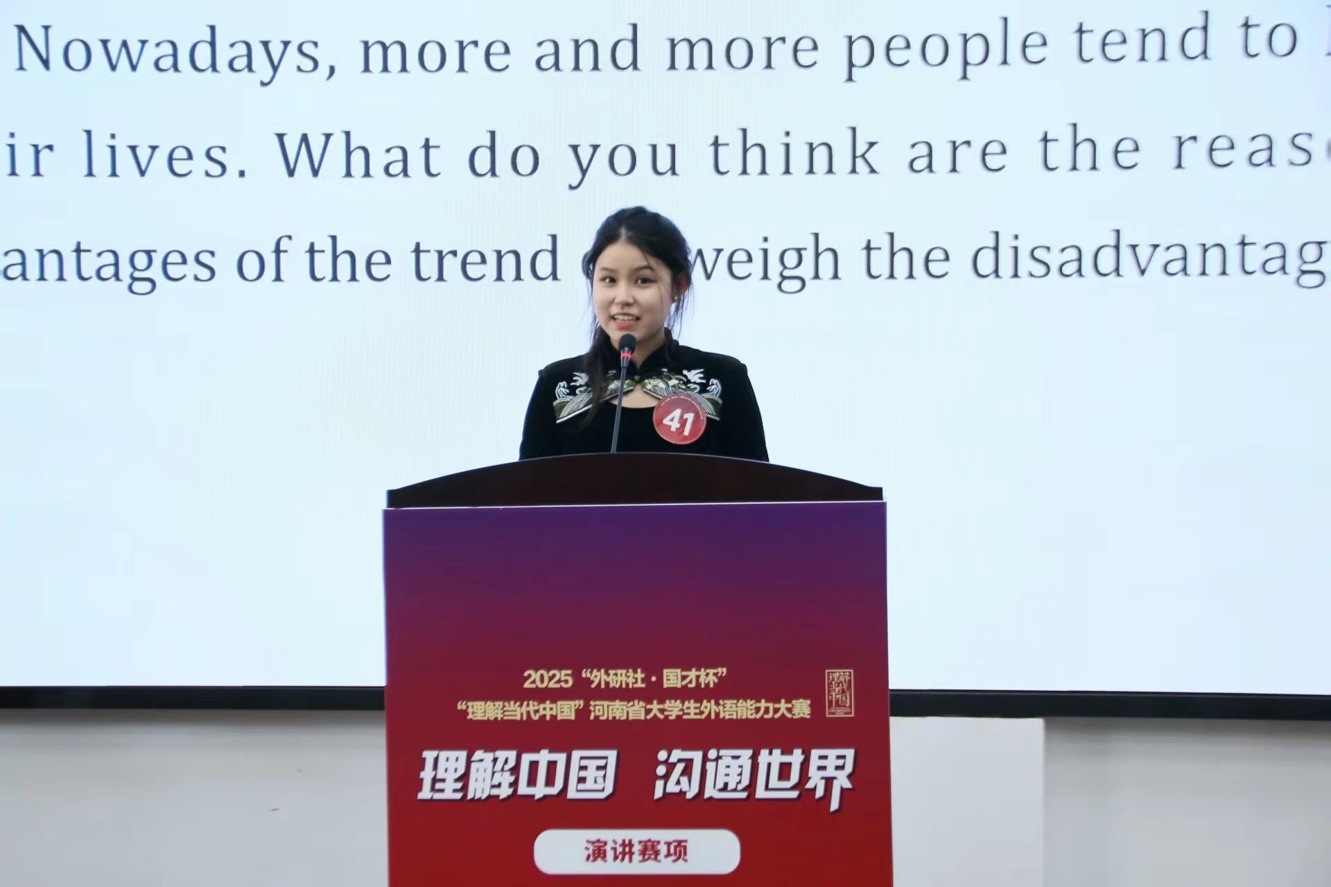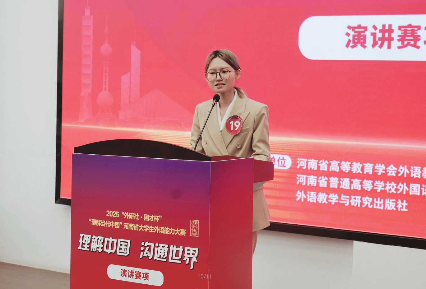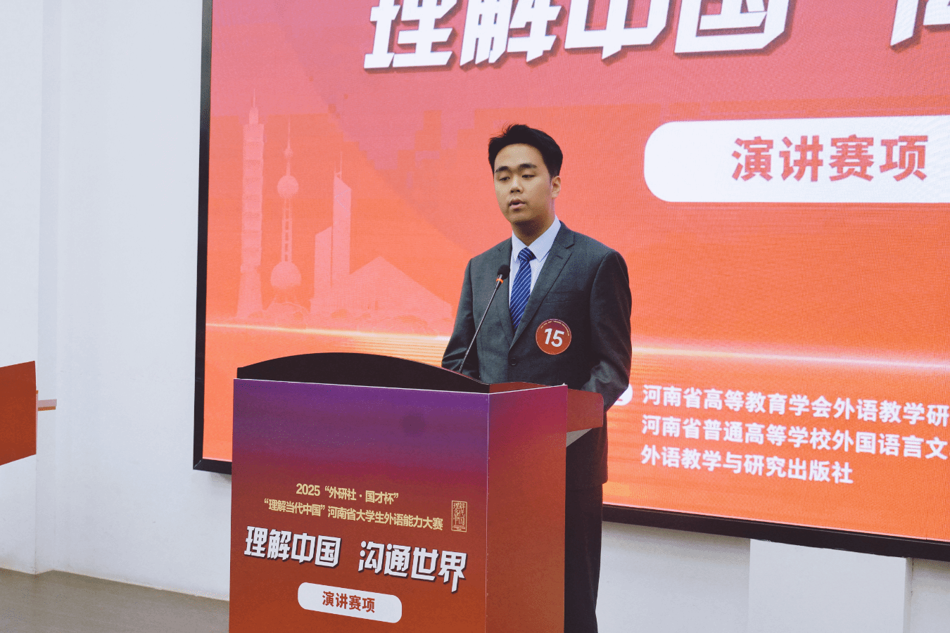11月8日-9日,由河南省教育厅主办,河南省高等教育学会外语教学研究分会、河南省普通高等学校外国语言文学类专业教学指导委员会、外语教学与研究出版社协办,M88 APP下载承办的2025“外研社·国才杯”“理解当代中国”河南省大学生外语能力大赛演讲赛项在我校龙子湖校区圆满举行。本次大赛以“理解中国,沟通世界”为主题,吸引了来自全省高校的133名优秀学子同台竞技,展现新时代青年的外语素养与国际视野。