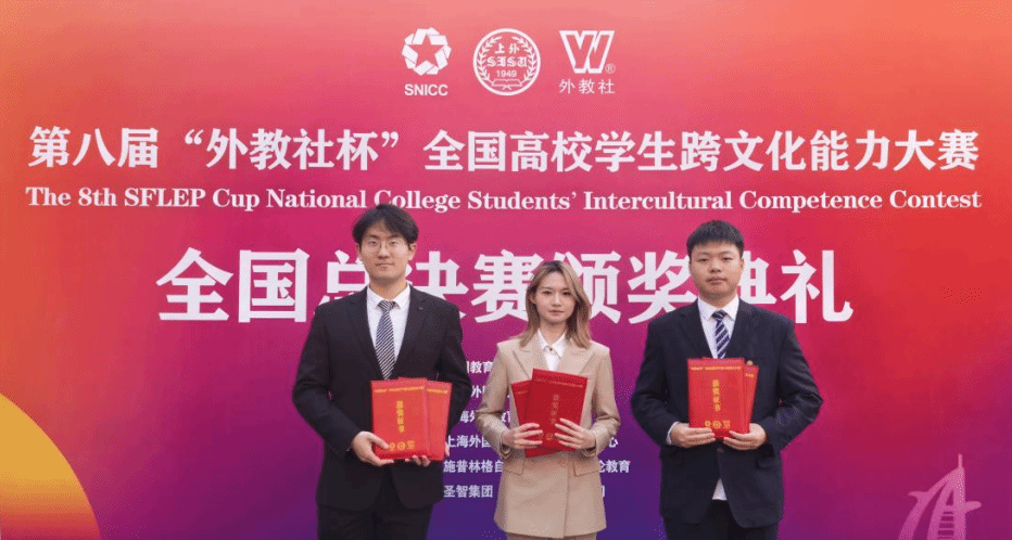 12月12日至14日,第八届“外教社杯”全国高校学生跨文化能力大赛全国决赛总决赛在上海外国语大学落幕。本届大赛规模空前,吸引了全国31个省、自治区、直辖市1050余所高校的3000多名学生参与。经过校赛、省赛层层选拔,最终76支中国学生队伍晋级全国决赛。由我校软件学院刘政锐、马克思主义学院张子瀚、外语学院(高级翻译学院)蒙欣鑫三名同学组成的参赛团队,在M88 APP下载郑玮、李冬青、薛丽娜三位教师的悉心指导下,凭借出色的跨文化分析能力、扎实的语言功底与默契的团队协作,荣获全国二等奖,其参赛案例从众多案例中脱颖而出,斩获“优秀案例奖”。